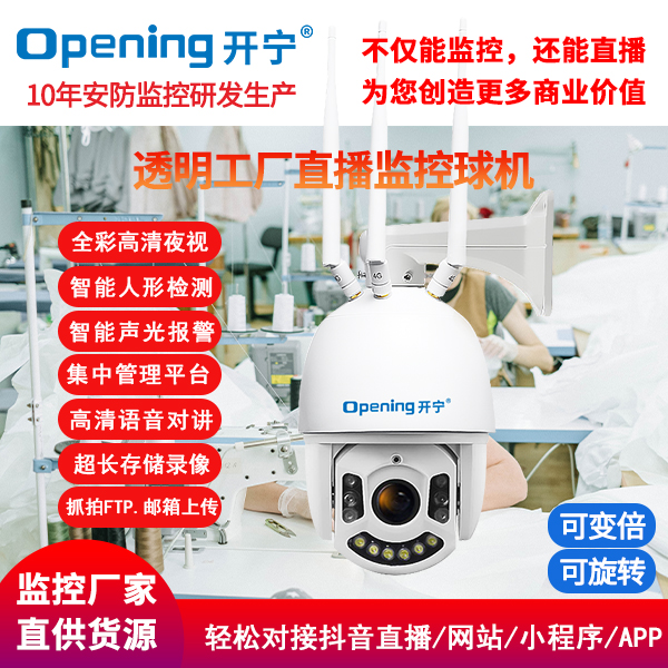 開寧視訊結(jié)合自身研發(fā)技術(shù)優(yōu)勢,推出了開寧直播監(jiān)控攝像頭系列產(chǎn)品,為更多的傳統(tǒng)工廠打造“透明工廠”,提高知名度,帶來更多的客戶,創(chuàng)造更多的商業(yè)價值!