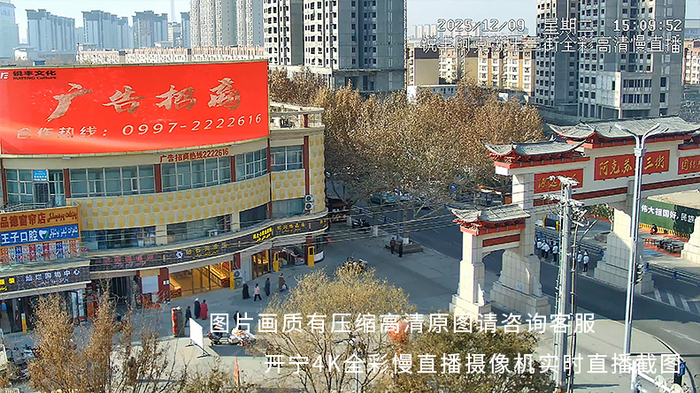 針對阿克蘇的惡劣天氣,球機的專業(yè)防護等級與環(huán)境適應功能發(fā)揮了關鍵作用。在春季風沙天氣中,慢直播設備的鏡頭保護功能確保畫面清晰;冬季低溫環(huán)境下,機身仍能穩(wěn)定運行,將雪后老街的銀裝素裹與整潔有序的街區(qū)風貌實時傳遞。而多網(wǎng)絡適配能力,則徹底解決了老街部分區(qū)域的施工難題,無需復雜部署即可實現(xiàn)穩(wěn)定推流。