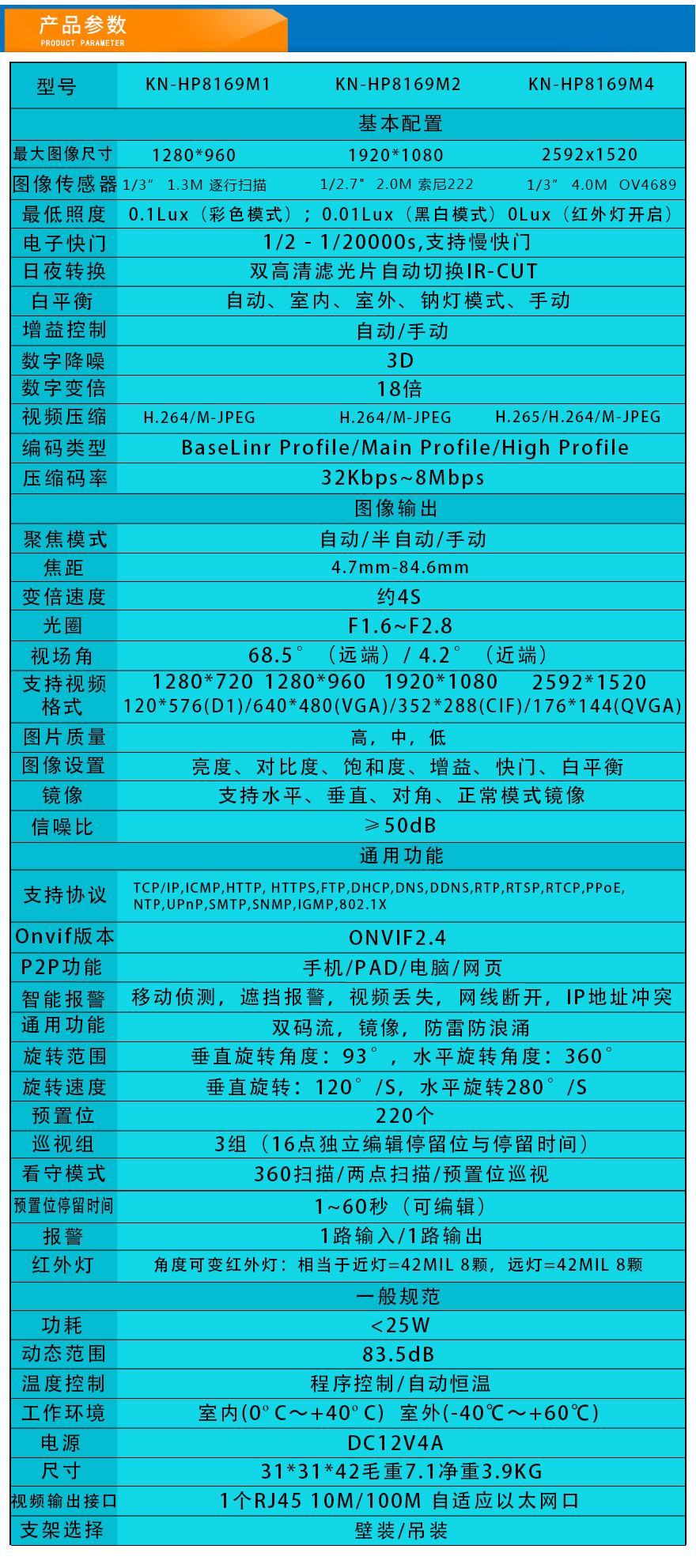 - 網(wǎng)絡(luò)智能球機 KN-HP8169