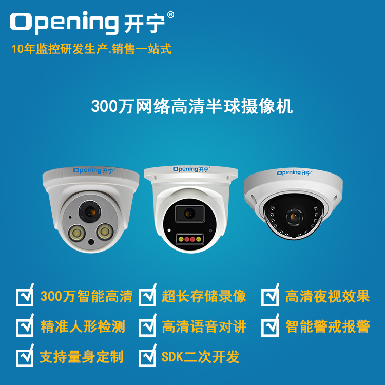 - 開寧300萬網(wǎng)絡(luò)高清半球攝像機8大優(yōu)勢: