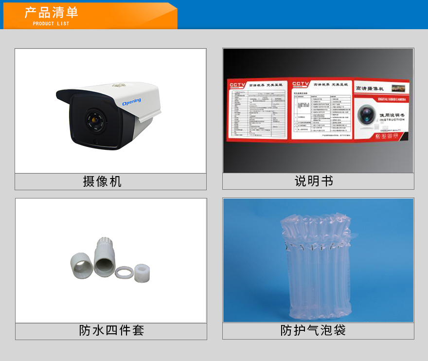 ★4顆晶元LED紅外陣列燈,紅外15-50米,300萬(wàn)高清定焦鏡頭(4mm/6mm/8mm可選),IP66防水全金屬外觀,DC12V供電。