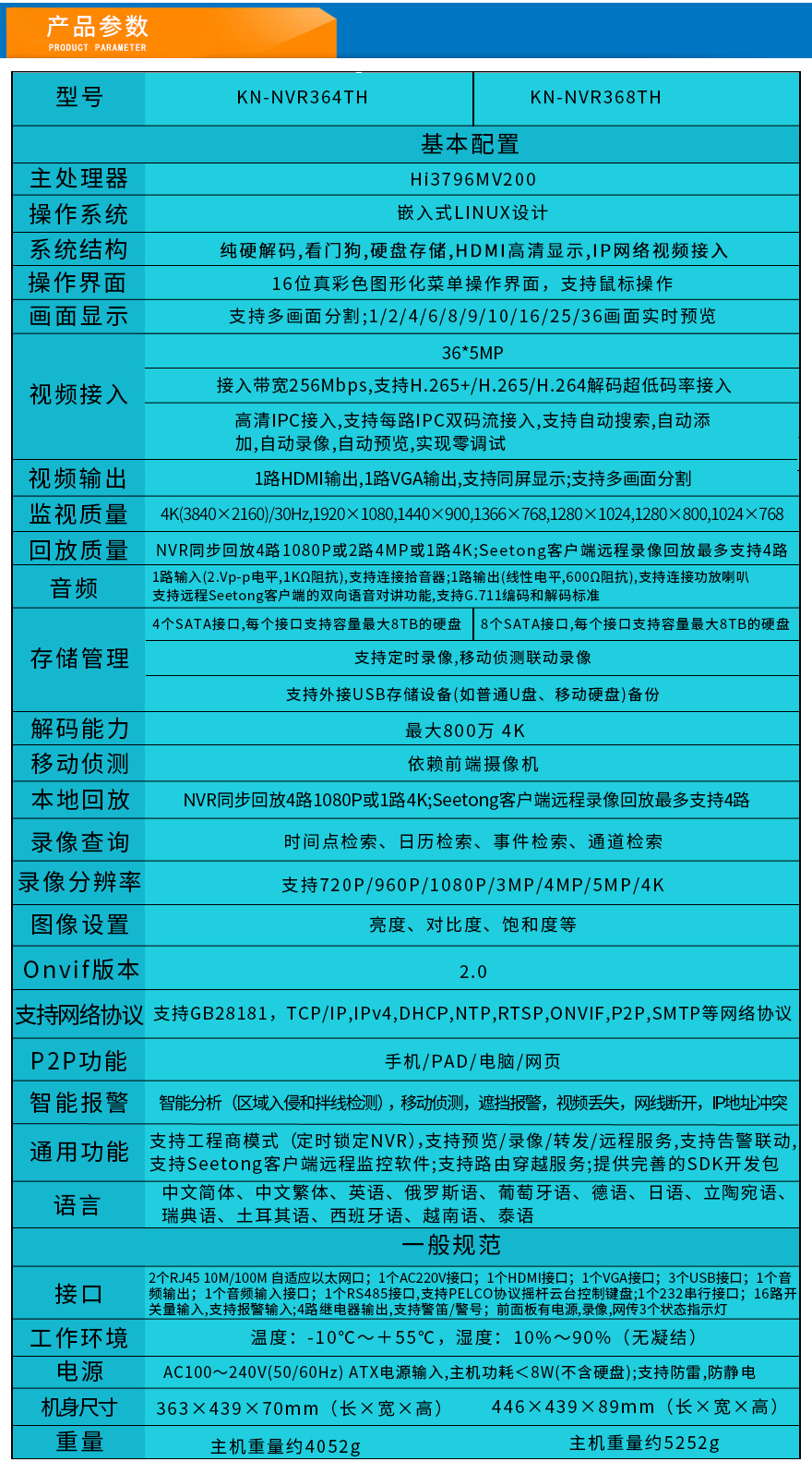 - 36路4盤位/8盤位網絡硬盤錄像機 KN-NVR364/8TH