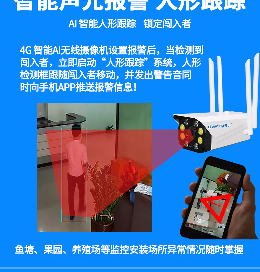 2、內(nèi)置智能4G模塊;適用場(chǎng)所:養(yǎng)殖/種植/工地/公園/公路/野外等沒網(wǎng)絡(luò)地方;