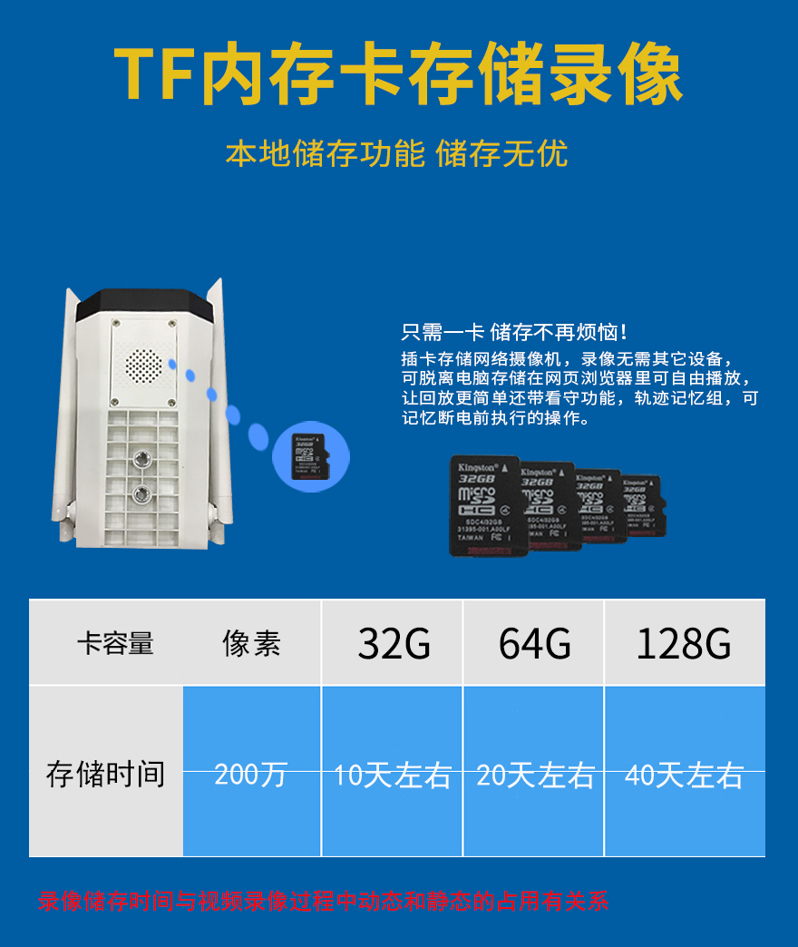 3、海思H.265壓縮算法,超長(zhǎng)存儲(chǔ)錄像;最大支持256G存儲(chǔ)卡(60天左右錄像);