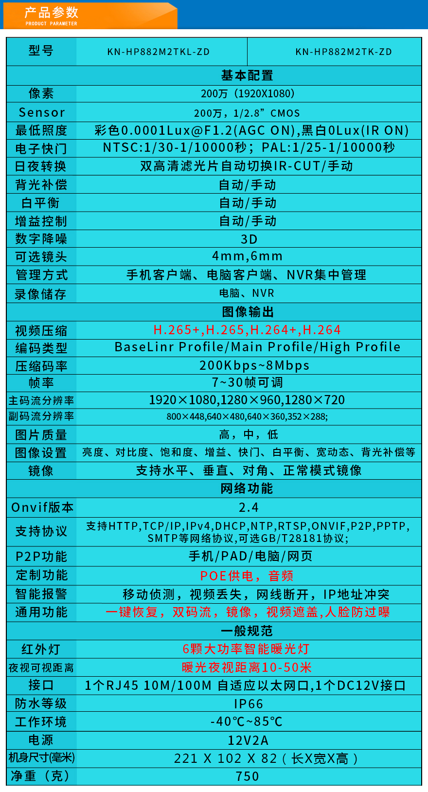 ★智能黑光全彩、1080P/1944P(200萬/500萬)、超長存儲、智能高清、全網(wǎng)通、低碼流、低照度、低功耗、H.265+雙碼流、防靜電、防浪涌、過壓保護、移動偵測報警。