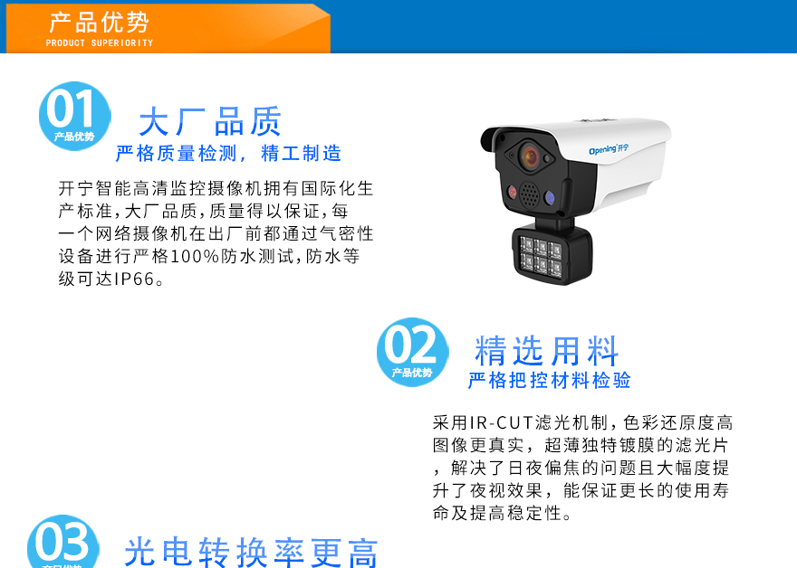 ★6顆晶元LED智能暖光陣列燈,2顆紅藍(lán)警戒燈,紅外15-50米,F(xiàn)1.0黑光專用高清定焦鏡頭/星光級專用高清監(jiān)控定焦專用鏡頭/超長存儲高清監(jiān)控專用鏡頭可選(4mm/6mm可選),IP66防水全金屬外觀,DC12V供電。