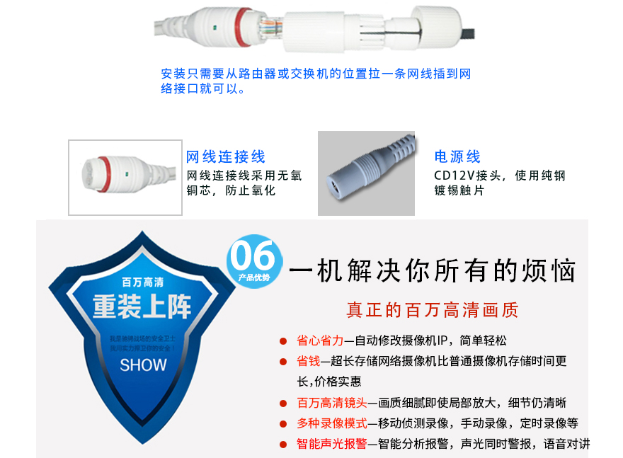 ★超長存儲、1080P(200萬)、智能高清、全網(wǎng)通、低碼流、低照度、低功耗、H.264+/H.265+雙碼流、防靜電、防浪涌、過壓保護(hù)、移動偵測報(bào)警。