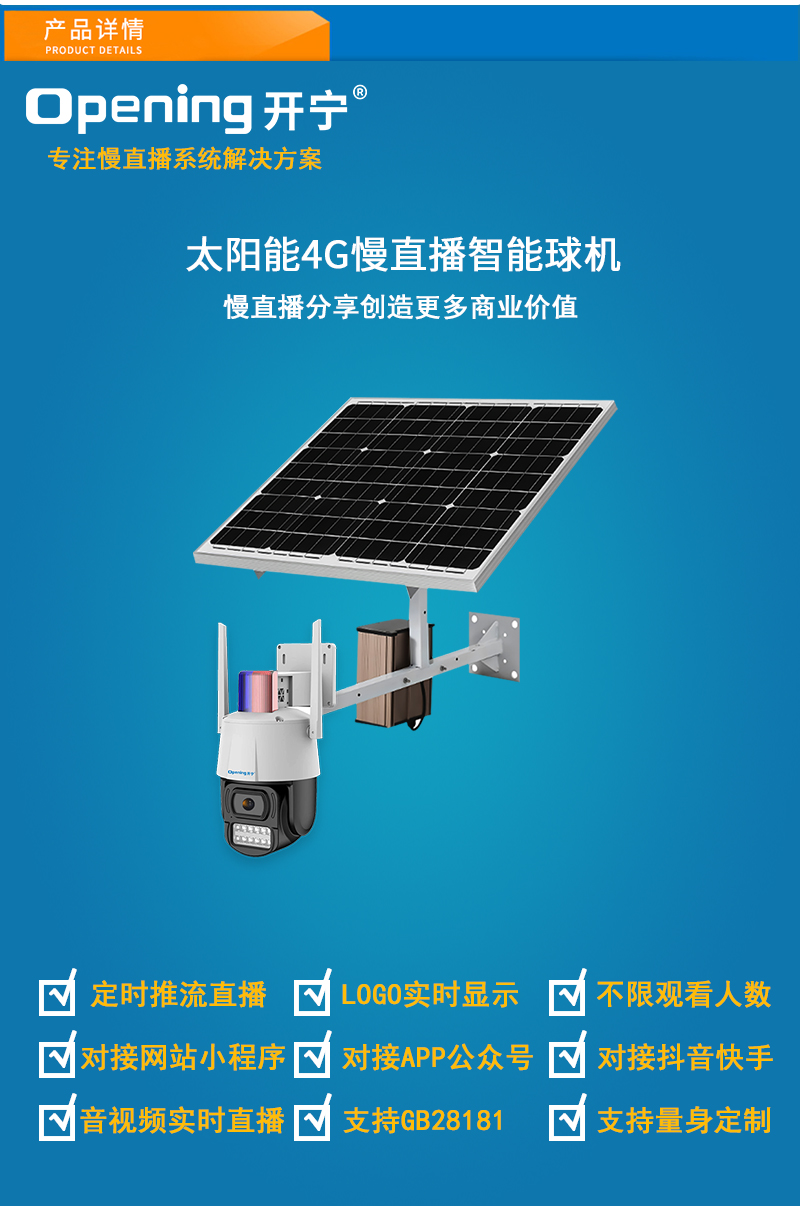 9、支持64/128G/256G內存卡;可另選配太陽能供電系統(tǒng)實現無電無網實時慢直播;