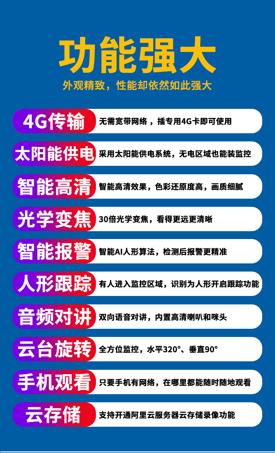 - ★這是一款4G無線智能球機(jī),一個(gè)機(jī)器就相當(dāng)于一套監(jiān)控系統(tǒng);