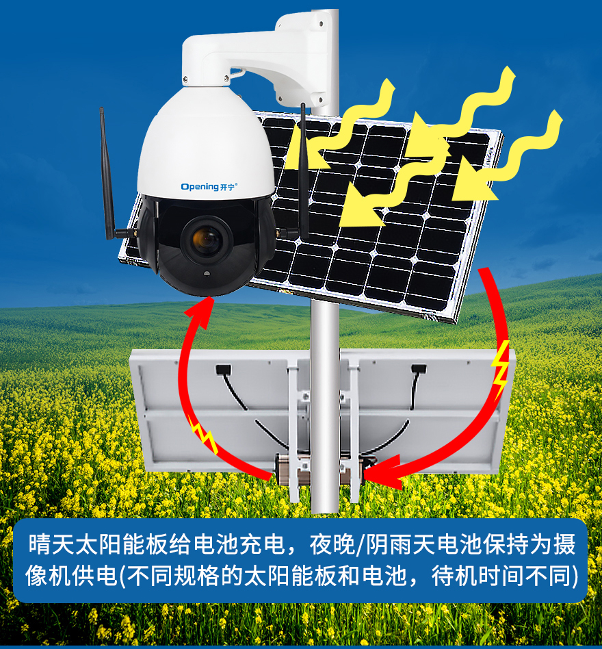 ★使用太陽能供電系統(tǒng)供電,可選60~200瓦太陽能板,30~100AH電池;