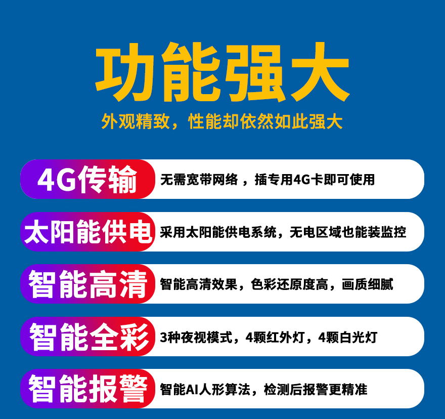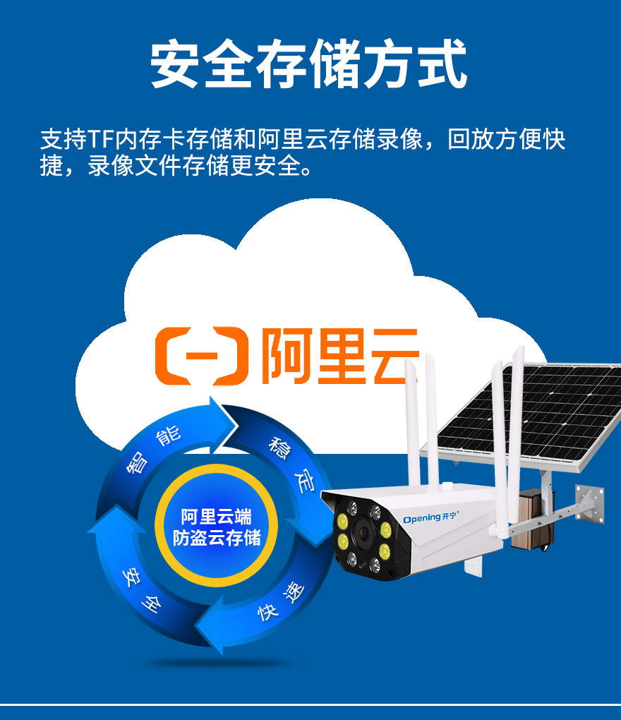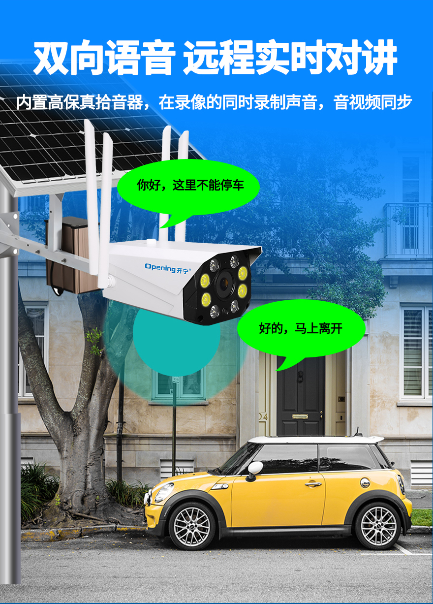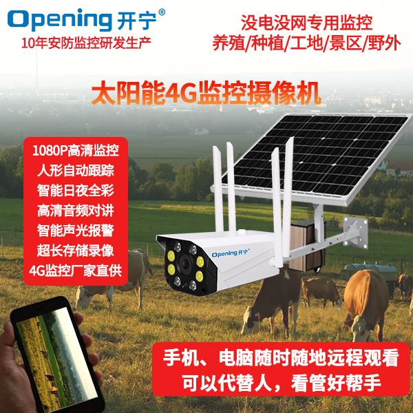 - ★這是一款開寧4G無線太陽能供電監(jiān)控系統(tǒng),一個機器就相當于一套監(jiān)控系統(tǒng),無電無網(wǎng)也可以使用;