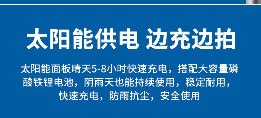 ★使用太陽能供電系統(tǒng)供電,可選60~200瓦太陽能板,30~100AH電池;