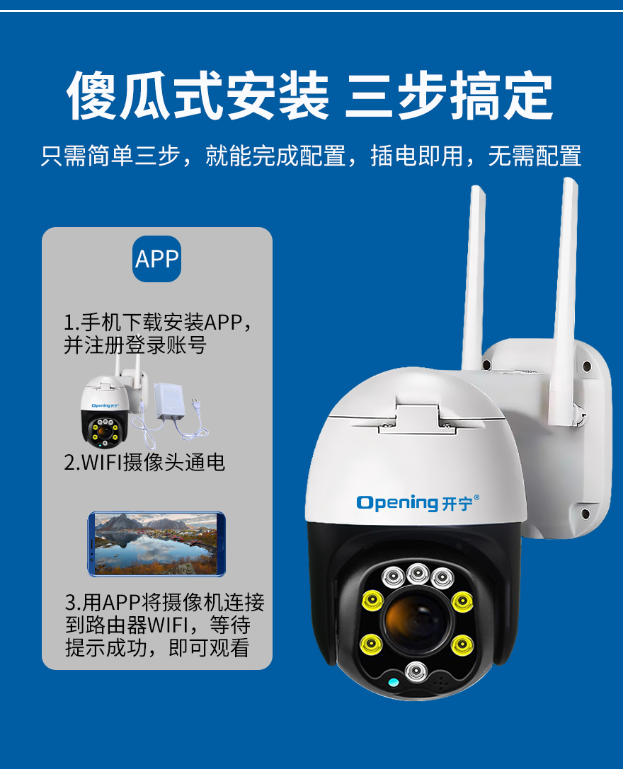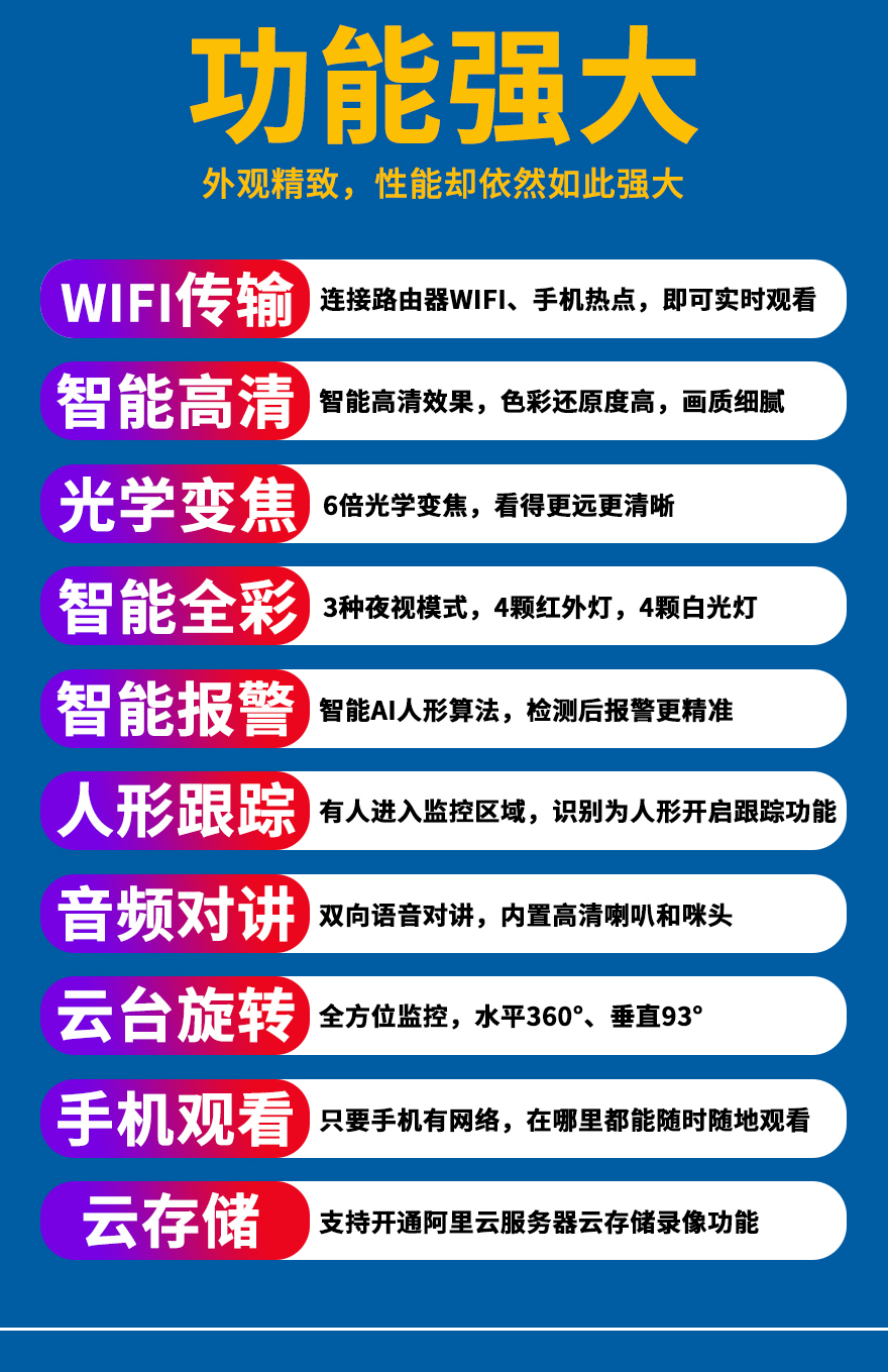 - 1、無線變焦智能全彩小球,一個(gè)小球就是1套監(jiān)控系統(tǒng);