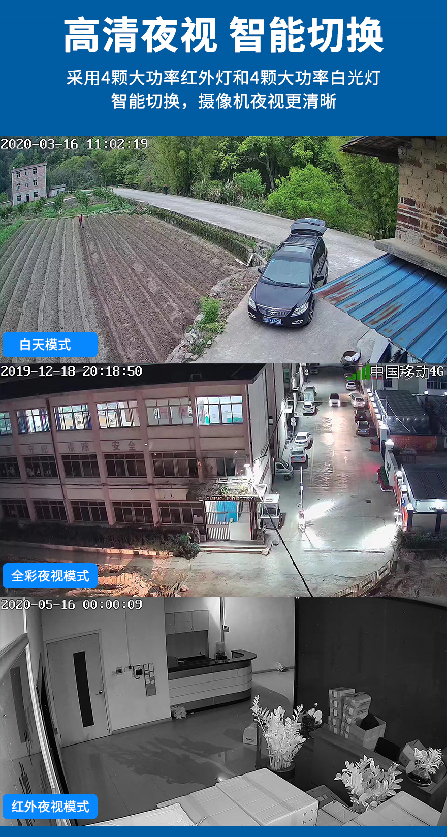 9. 4顆高效能點(diǎn)陣紅外燈,4顆高效能點(diǎn)陣白光燈;(6倍變焦鏡頭),夜視10-80米。