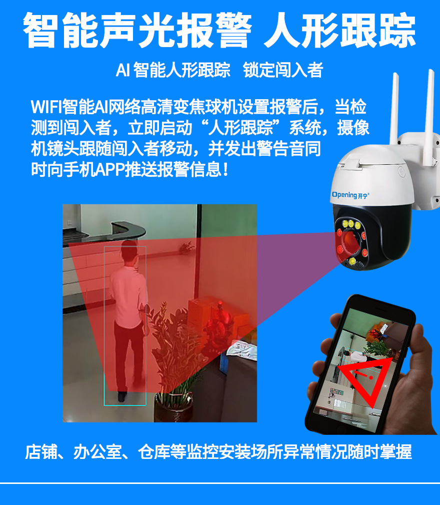 4. 智能AI網(wǎng)絡(luò)高清攝像機(jī),人臉人形檢測(cè),人形自動(dòng)跟蹤,智能語音警戒報(bào)警;