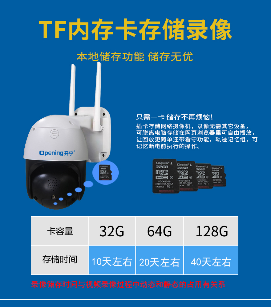 3. 海思H.265壓縮算法,超長(zhǎng)存儲(chǔ)錄像;最大支持256G存儲(chǔ)卡(30-60天左右錄像);