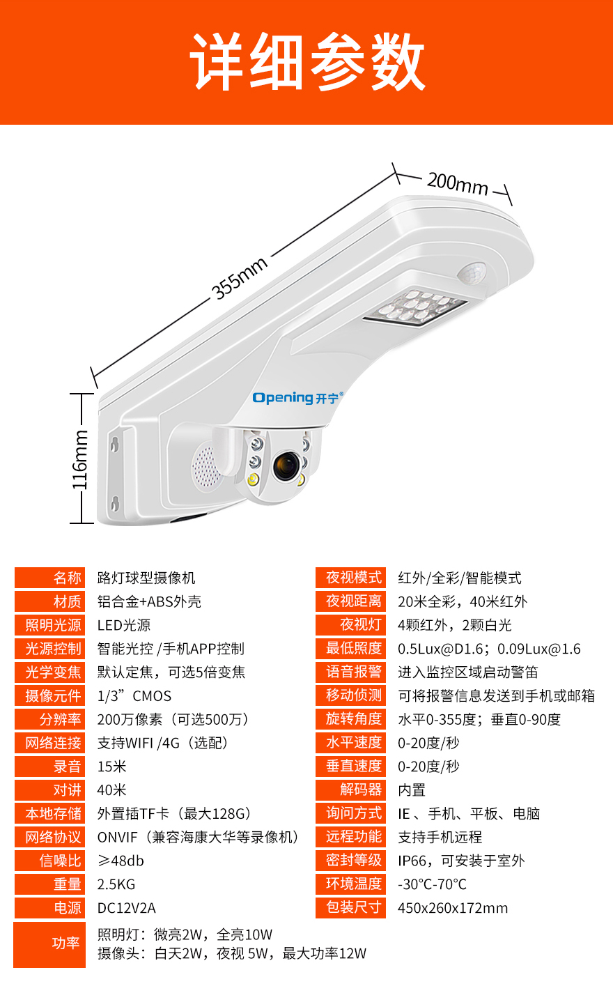 - 1、200萬(1080P)4G無線智能路燈全彩小球,一個機(jī)器=監(jiān)控系統(tǒng)+照明系統(tǒng);