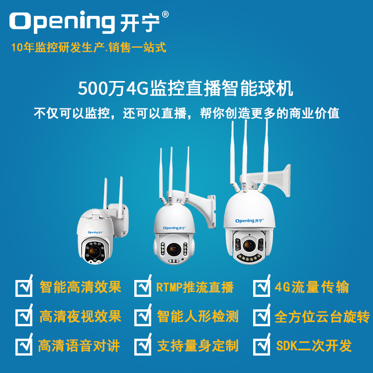 - 1、200萬/500萬7寸30倍4G智能監(jiān)控直播網(wǎng)絡(luò)高清球機(jī),一個(gè)球機(jī)就是一套監(jiān)控直播系統(tǒng);