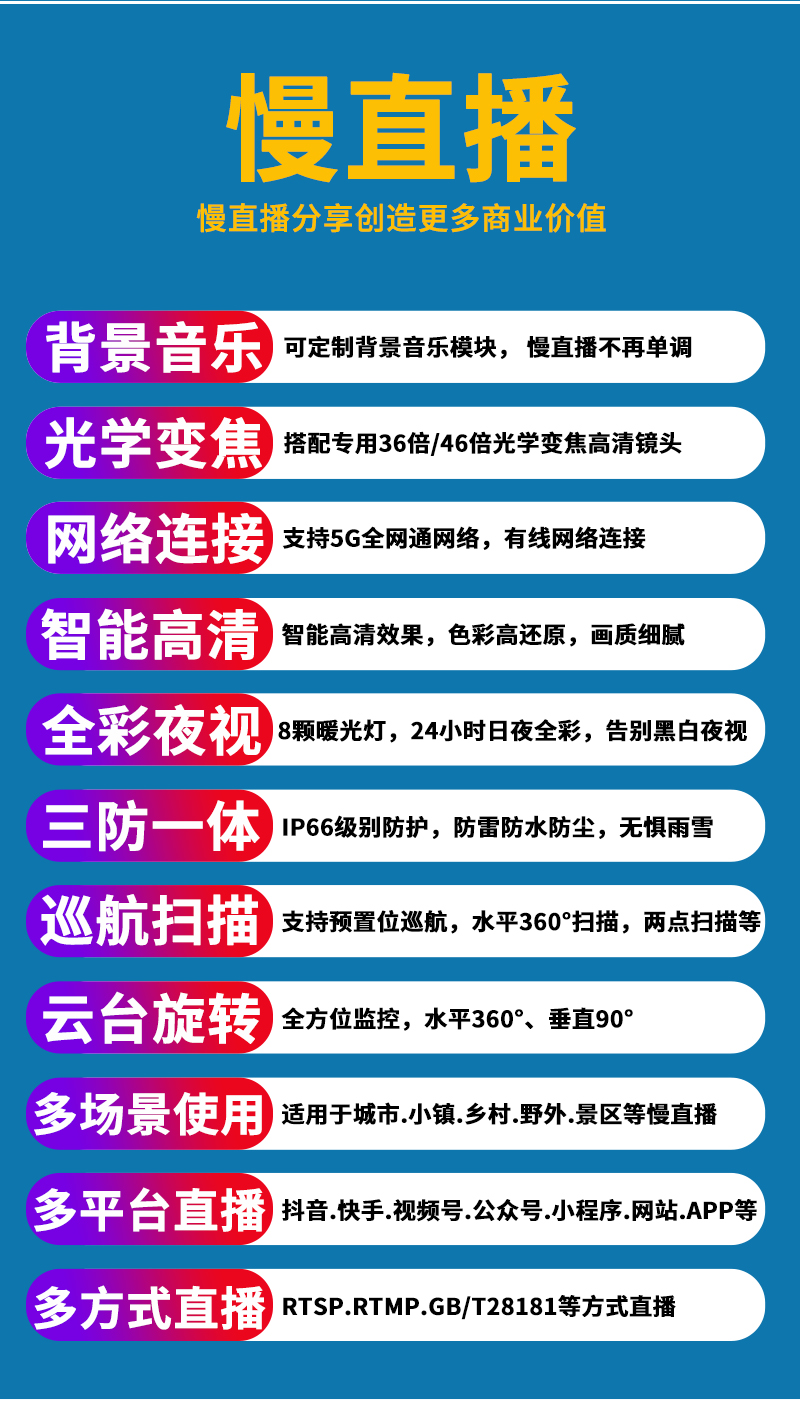 7、RTMP推流直播高清攝像頭;可生成慢直播二維碼,只需掃碼即可觀(guān)看慢直播;
