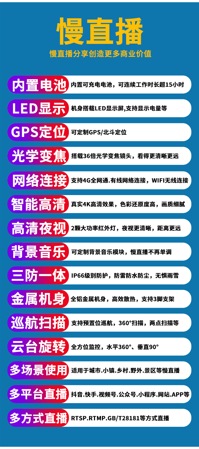 5、美景中國.智慧景區(qū).城市慢直播.5G慢直播.融媒體慢直播.央視頻慢直播.便攜式直播等慢直播;