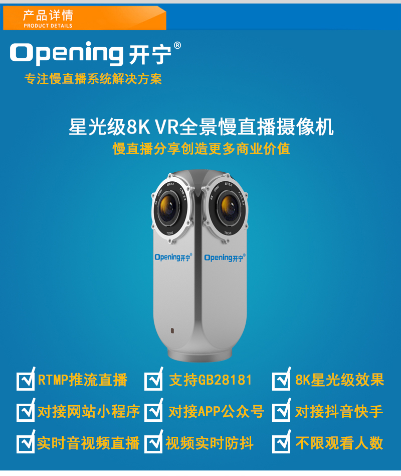 7.直播分辨率:7680*3840@30幀 ;5400*2700@30幀;3840*1920@30幀@60幀,支持H.265/H.264編碼,RTMP/RTMPS/RTSP直播協(xié)議,支持7x24小時(shí);
