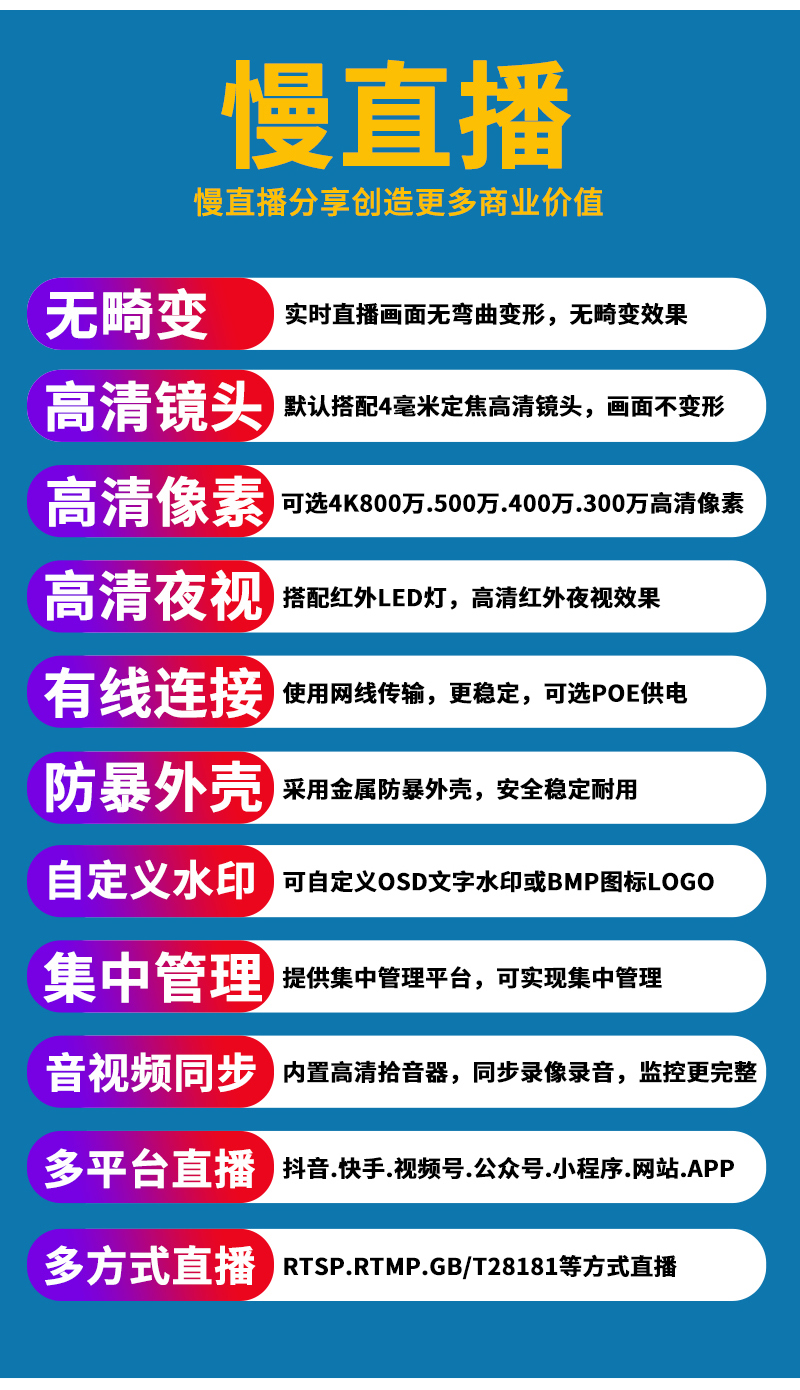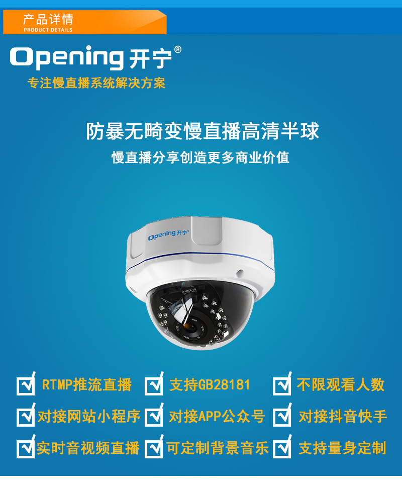 - 1、200萬/300萬/500萬/4K無畸變直播網(wǎng)絡(luò)高清半球,一個半球就是一套監(jiān)控直播系統(tǒng);