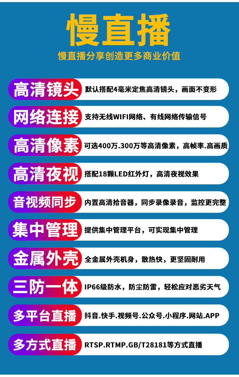5、RTMP推流直播高清攝像頭;可生成慢直播二維碼,只需掃碼即可觀看慢直播;